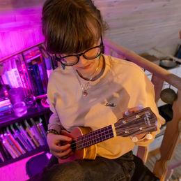 Eftersom musik och instrument är en viktig del av livet har instrumenten en central plats i huset. Gitarrer hänger på väggen och även instrumentfodral för fiol och ukulele. Passionen för musik är stark, Hanna är en fena på till exempel ukulele och Conrad spelar i huvudsak gitarr, men även andra instrument som till exempel piano.