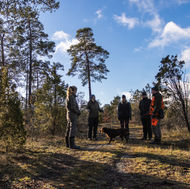 Andra kursen jag var med på var en spårkurs, där hundarna skulle hitta ett rådjursben i slutet av ett spår av blod. Ägarna gick ut i skogen och hällde ut små droppar blod som ledde till benet, som hundarna sen spårade. Här tog Åsa mer en roll som observatör, då det kändes att de flesta hundarna redan visste vad det hela gick ut på.