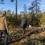 Sista dagen ute tillsammans var vi på harjakt. Här hade Åsa med sig Leia, som var på träning. Åsas roll i jakten var apportör. Hennes hund skulle spåra hararna ifall det blev ett skadeskott. Denna gång fick Leia inte apportera i skarp situation, men hon fick öva apportera med en av hararna som hade skjutits tidigare. Hon klarade sig galant, och kommer definitivt bli en bra jakthund.